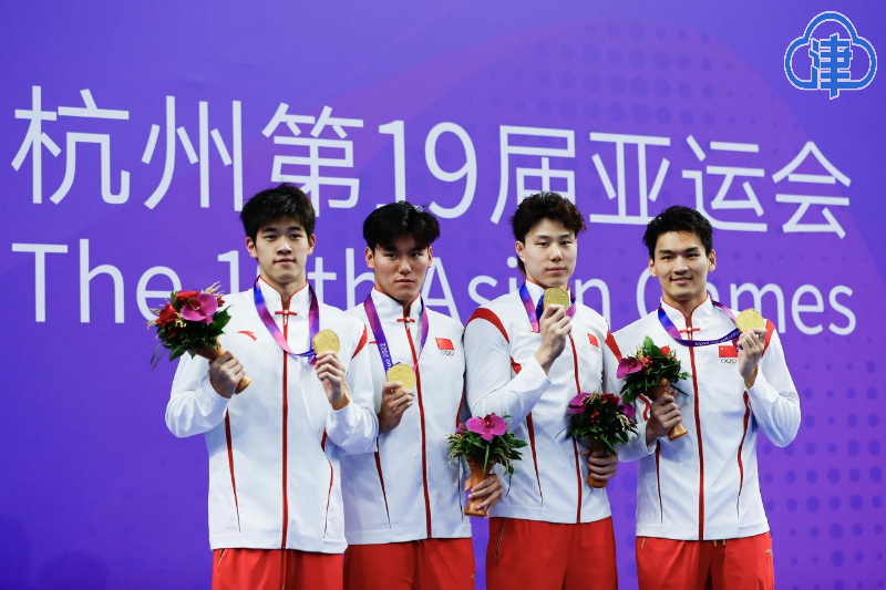 9月26日晚,杭州亚运会游泳男子4x100米混合泳接力决赛,天津选手、我校竞技运动学院2021级游泳专项学生王长浩,与队友徐嘉余、覃海洋和潘展乐通力合作,以3分27秒01摘得金牌,并刷新了该项目的亚洲纪录。