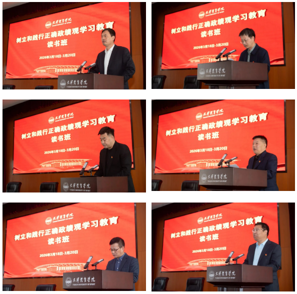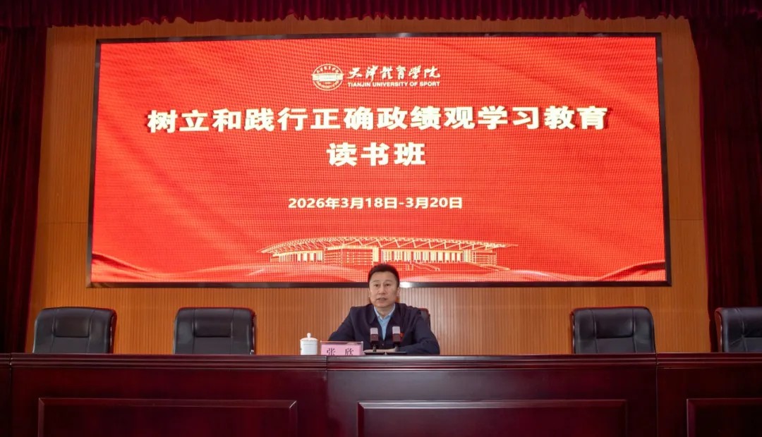 为推进树立和践行正确政绩观学习教育走深走实,2026年3月18日至20日,天津体育学院党委举办为期三天的树立和践行正确政绩观学习教育读书班。校领导张欣、李珊、张卫国、张洺涛、杨智、赵霞出席,全体处级干部参加。全体党支部书记、优秀年轻干部和业务骨干能力提升培训班学员参加开班动员和专家辅导报告环节。